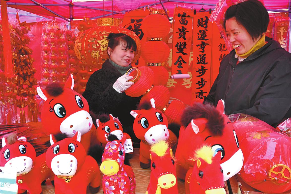 Хората избират артикули за празнуване на китайската Нова година на пазар в окръг Wuyi, Jinhua, провинция Zhejiang в Източен Китай, на 23 януари. ZHANG JIANCHENG/ЗА КИТАЙ ДАЙЛИ