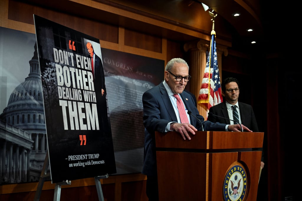 Демократичният лидер на Сената на САЩ Чък Шумер провежда пресконференция във Вашингтон в петък. Снимка: Ройтерс