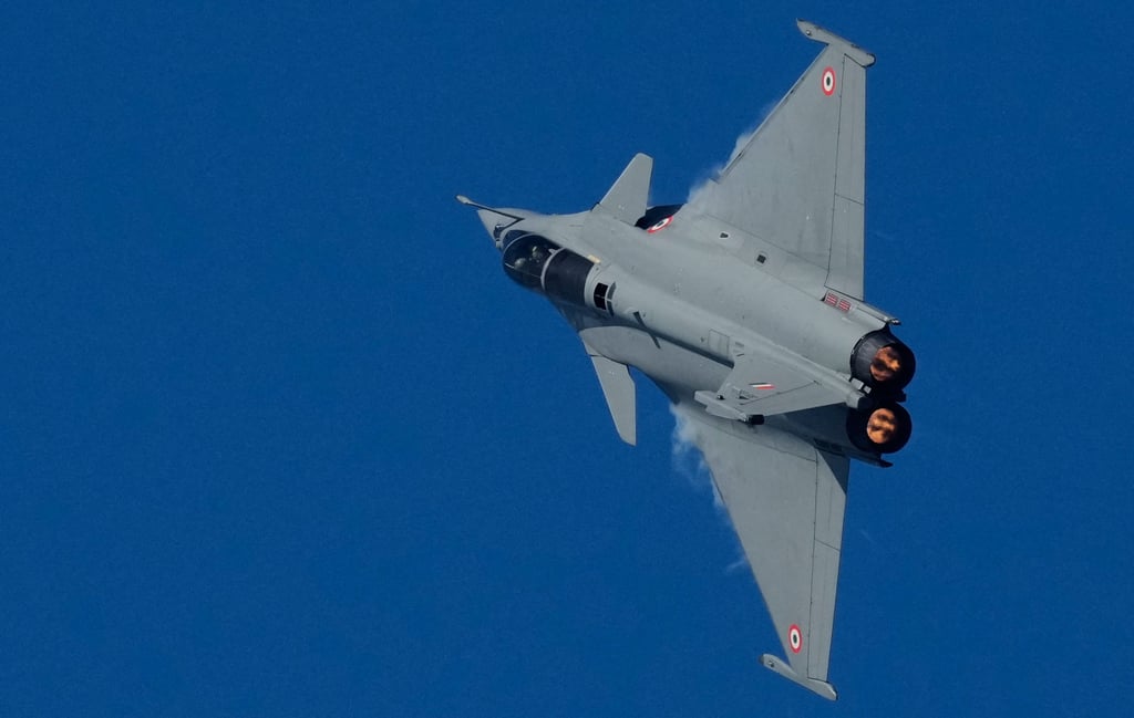 Индийски самолет Rafale изпълнява по време на честването на Деня на ВВС на 9 ноември 2025 г. Снимка: AP