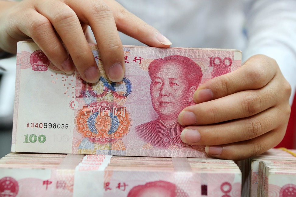 Чиновник брои пари в брой в банка в Нантонг, южнокитайската провинция Дзянсу. [Photo/Sipa]