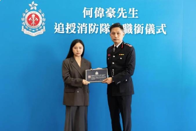 ХОНГ КОНГ – Отделът за противопожарни служби (FSD) на правителството на специалния административен регион Хонконг (HKSAR) в четвъртък посмъртно връчи почетното звание старши пожарникар на покойния Хо Уай-хо, който загина при пожара в Тай По, като признание за неговата образцова служба и безкористна отдаденост на дълга.