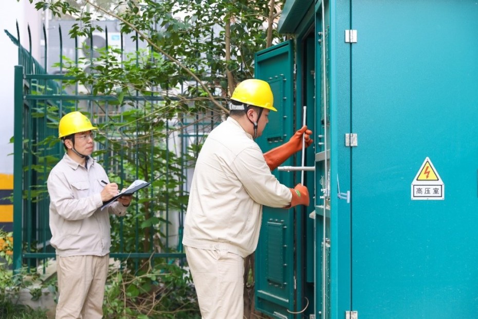 Служители на държавната електроснабдителна компания Changzhou проверяват безопасността на камерите за високо налягане. [Photo provided to chinadaily.com.cn]