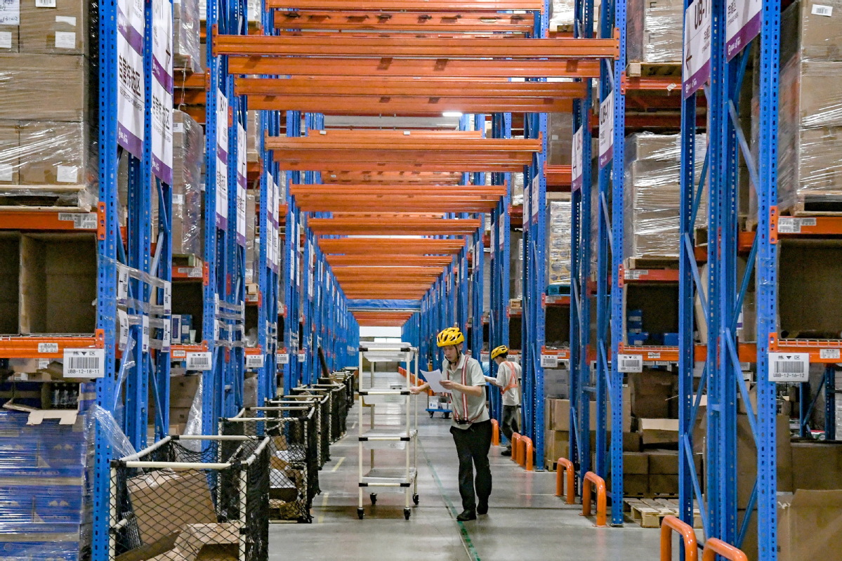 Служители сортират стоки в трансграничен логистичен център за електронна търговия в Jinhua, провинция Zhejiang, в подготовка за предстоящото пазаруване. ШИ КУАНБИН/ЗА КИТАЙ ЕЖЕДНЕВНО
