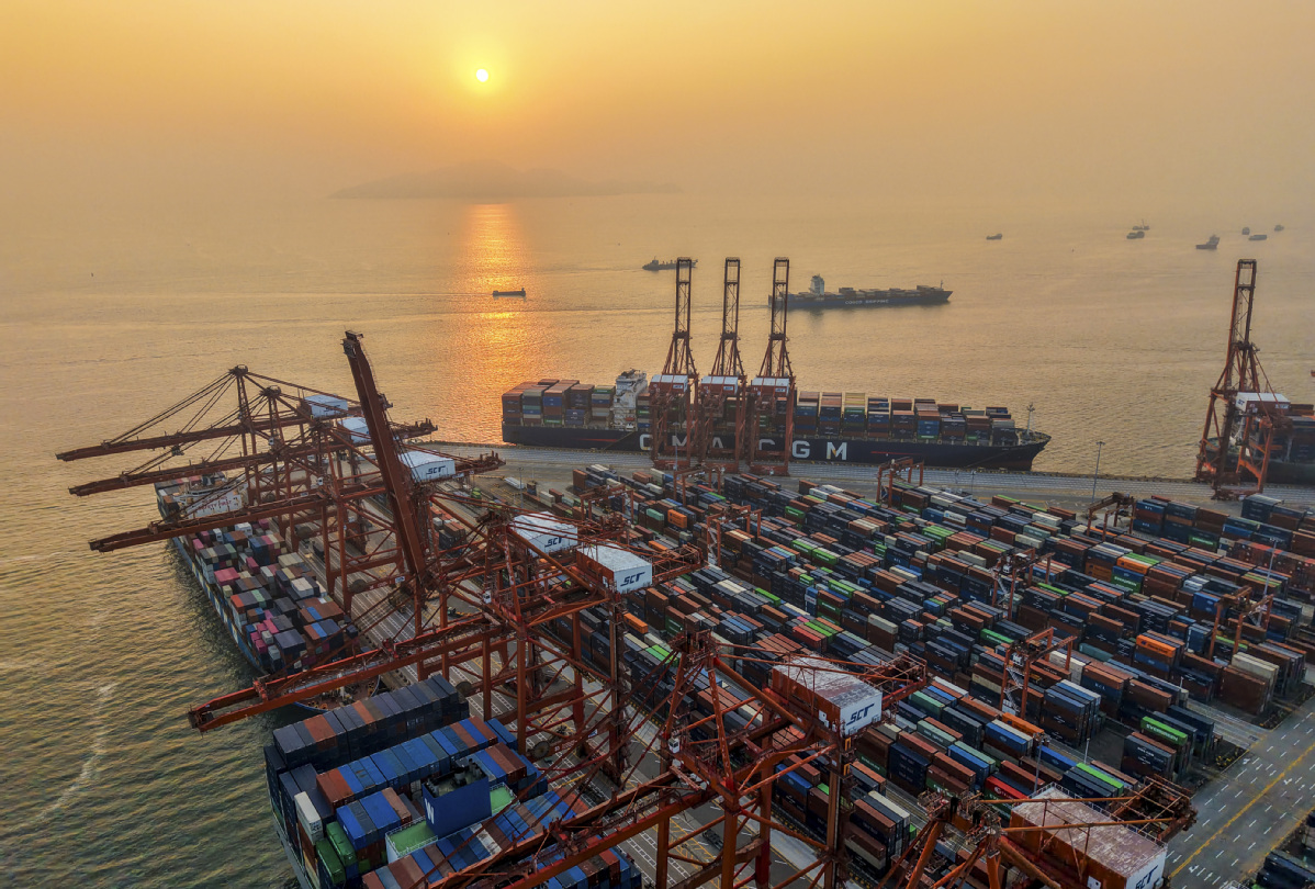 Снимка от въздуха, направена на 17 декември 2025 г., показва контейнерен терминал в Шенжен, провинция Гуангдонг в Южен Китай. [Photo/Xinhua]