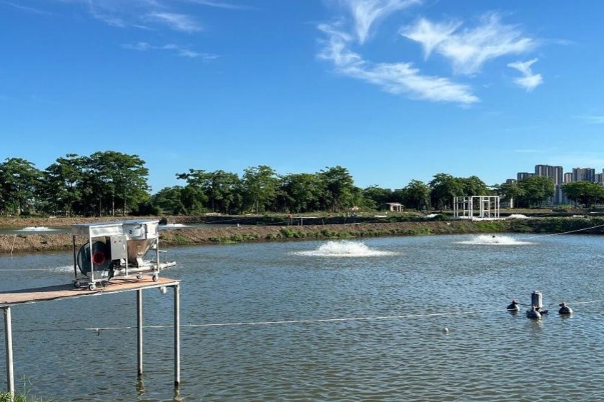 Аграрният университет Huazhong въвежда интелигентна система за хранене на риба, разработена от колежа по рибарство. [Photo provided to chinadaily.com.cn]