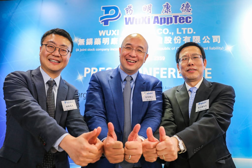 Ръководителите на Wuxi Apptec (LR): Съвместният секретар на компанията Яо Чи, председателят д-р Ли и изпълнителен директор на главния директор Едуард Ху по време на пресконференцията на IPO на компанията на 30 ноември 2018 г. Снимка: Едуард ВонгРъководителите на Wuxi Apptec (LR): Съвместният секретар на компанията Яо Чи, председателят д-р Ли и изпълнителен директор на главния директор Едуард Ху по време на пресконференцията на IPO на компанията на 30 ноември 2018 г. Снимка: Едуард Вонг